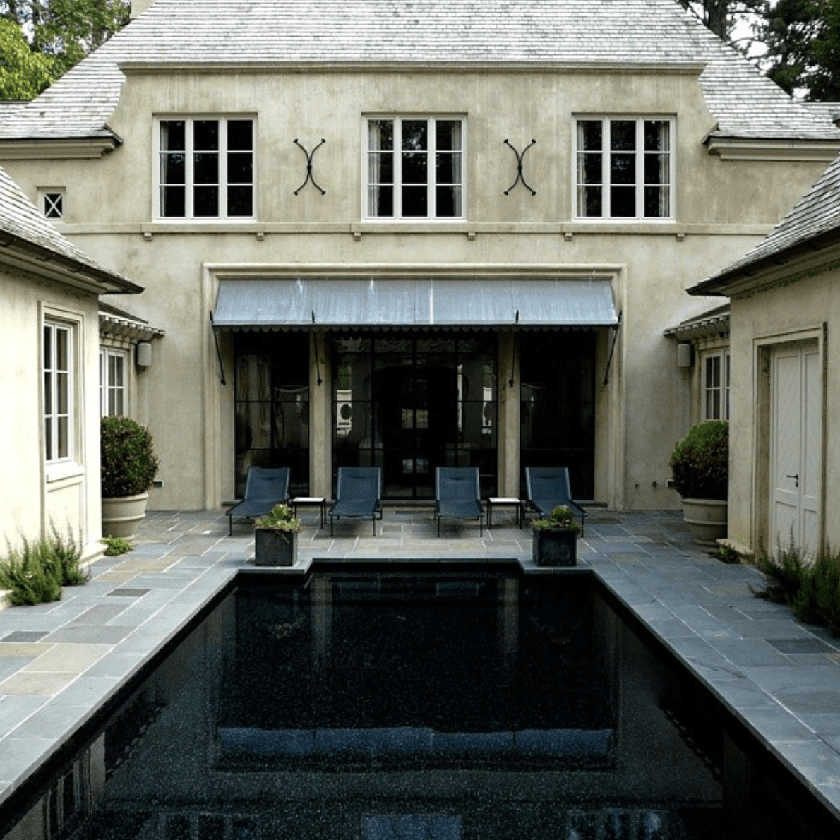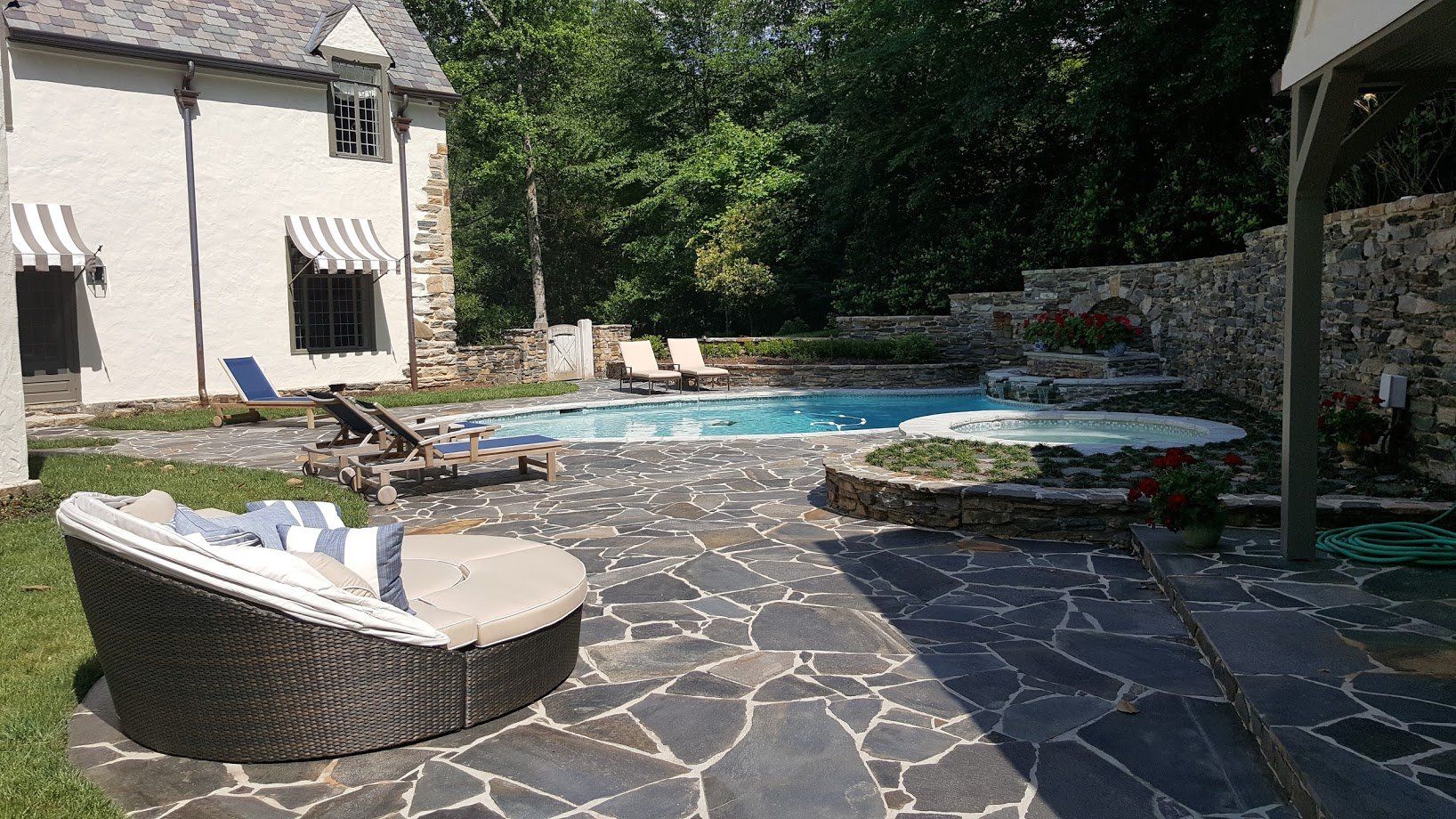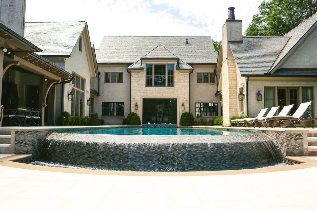 This beautiful pool has a built-in spa with seats for six, an infinity edge that drops down into a second collection pool and is the new centerpiece of their home's entertainment.