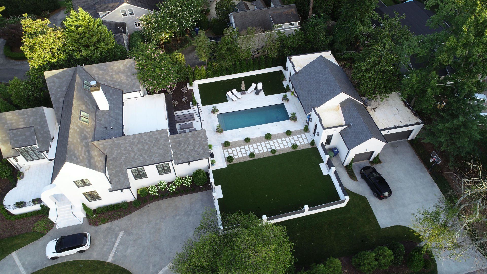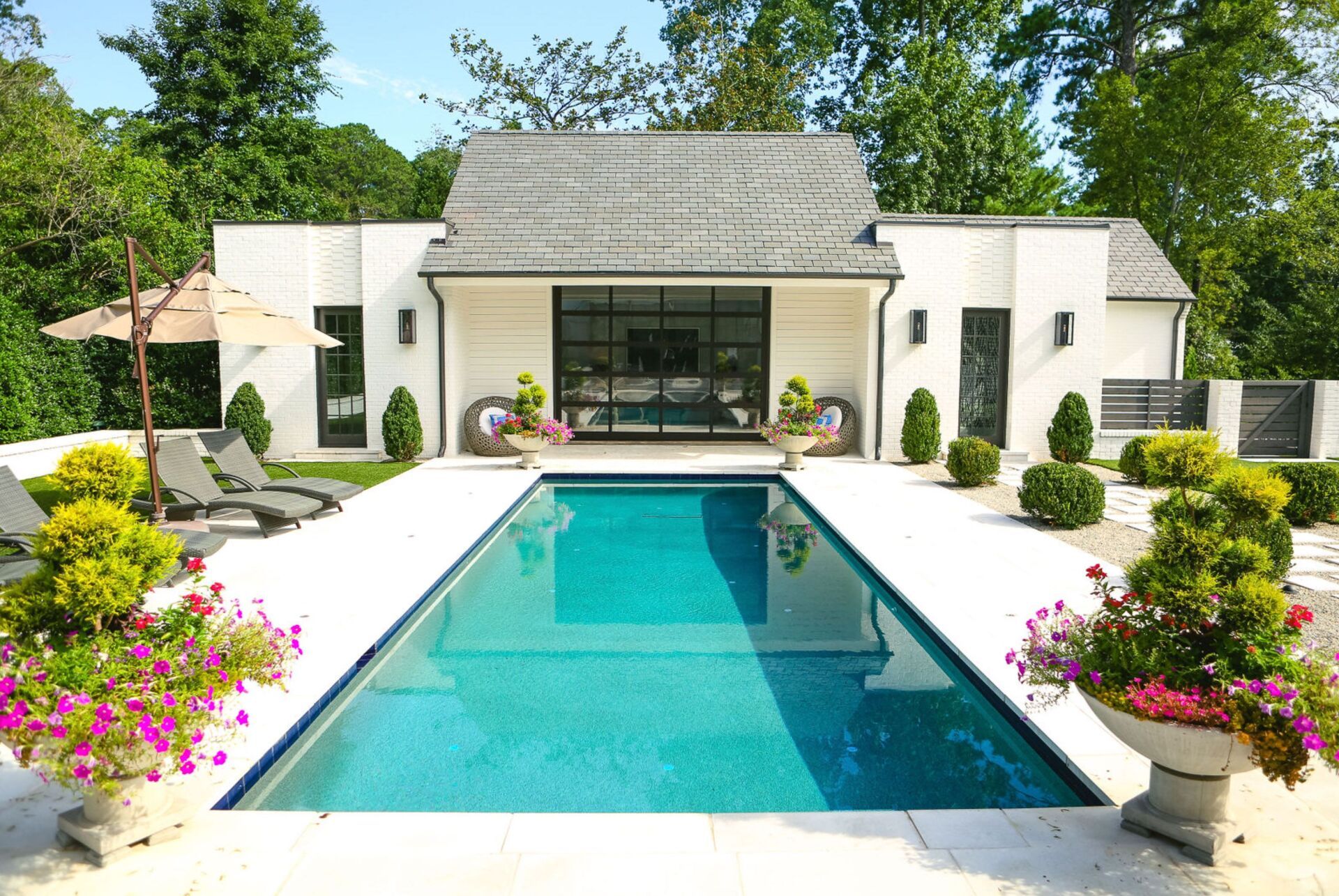 This pool includes both aquatic lighting and mobile lighting. With these amazing features you and your family can throw amazing gatherings! The addition of a spa and heaters make the pool available year round. The new pool blends seamlessly with the existing structure of the home!